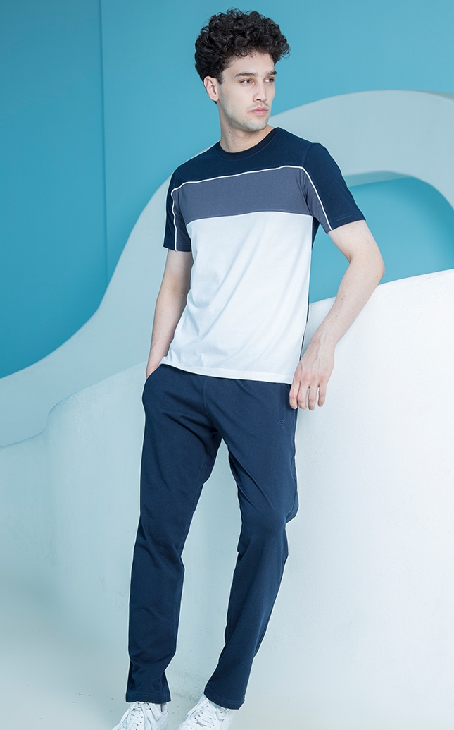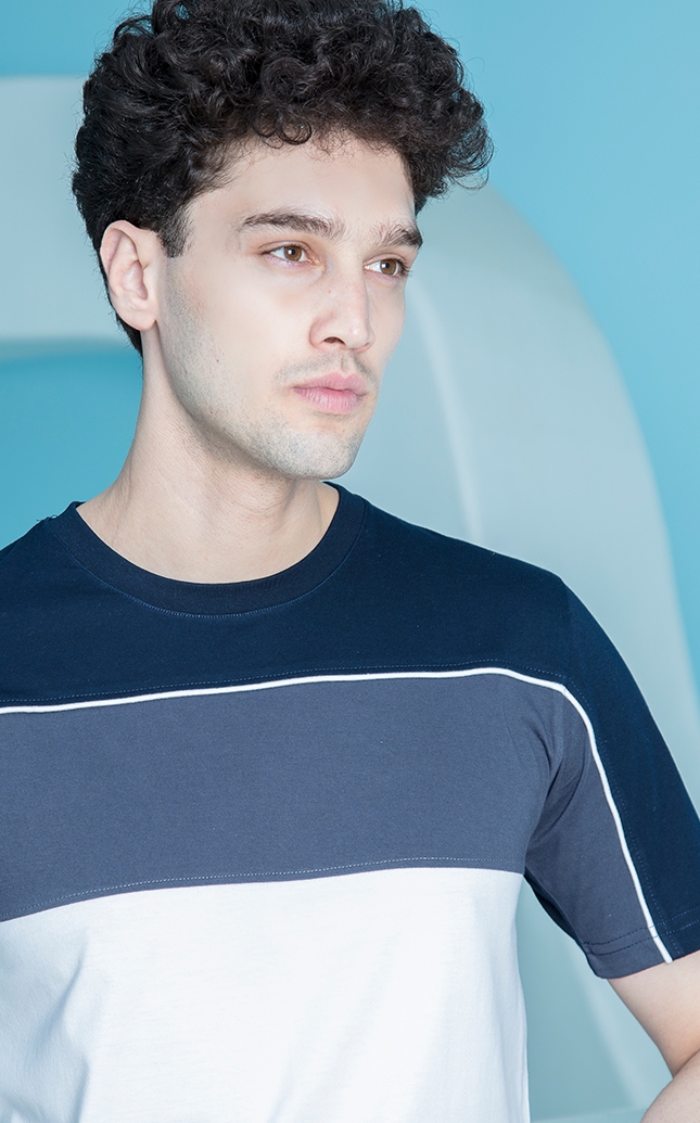 ست تی شرت تکه دوزی شده و شلوار راسته مردانه به دلیل وجود نداشتن نخ مصنوعی و سوراخ های کوچک در الیاف آن به راحتی دما و رطوبت بدن را تنظیم می کند به این ترتیب پوست به راحتی نفس می کشد و رطوبت آن تبخیرمی شود