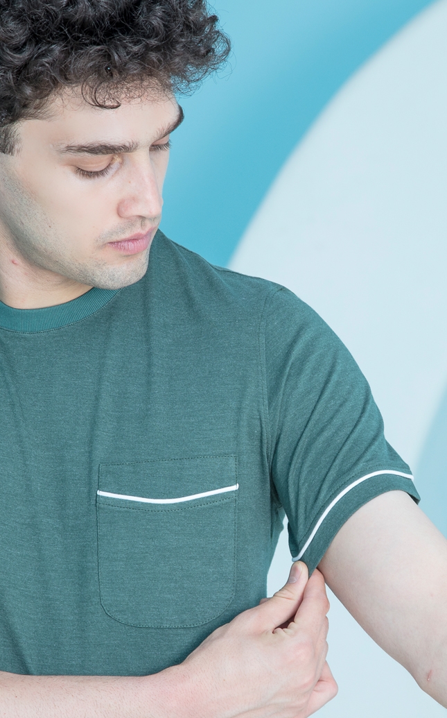 ست تی شرت جیبدار مغزی دوزی شده و شلوار راسته مردانه به دلیل وجود نداشتن نخ مصنوعی و سوراخ های کوچک در الیاف آن به راحتی دما و رطوبت بدن را تنظیم می کند به این ترتیب پوست به راحتی نفس می کشد و رطوبت آن تبخیرمی شود