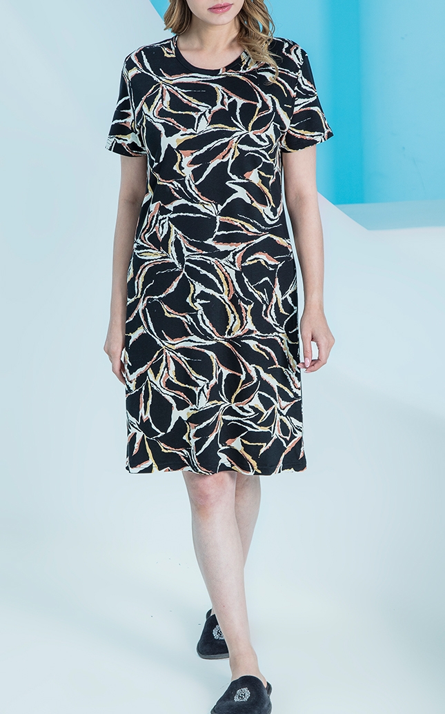 پیراهن زنانه آستین کوتاه یقه گرد طرحدار(برگ)