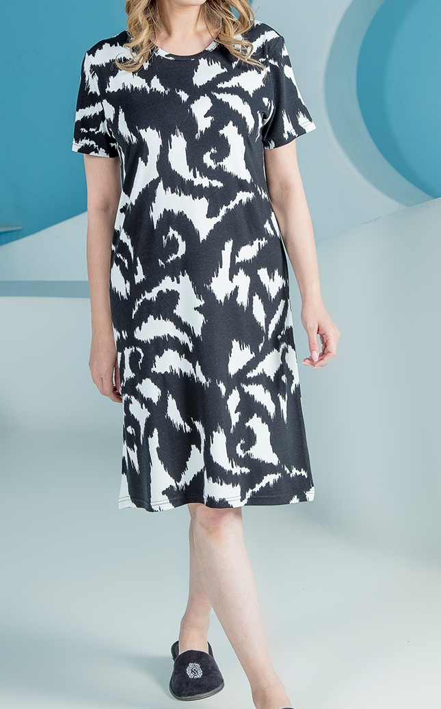 پیراهن زنانه آستین کوتاه یقه گرد طرحدار(سیاه و سفید)