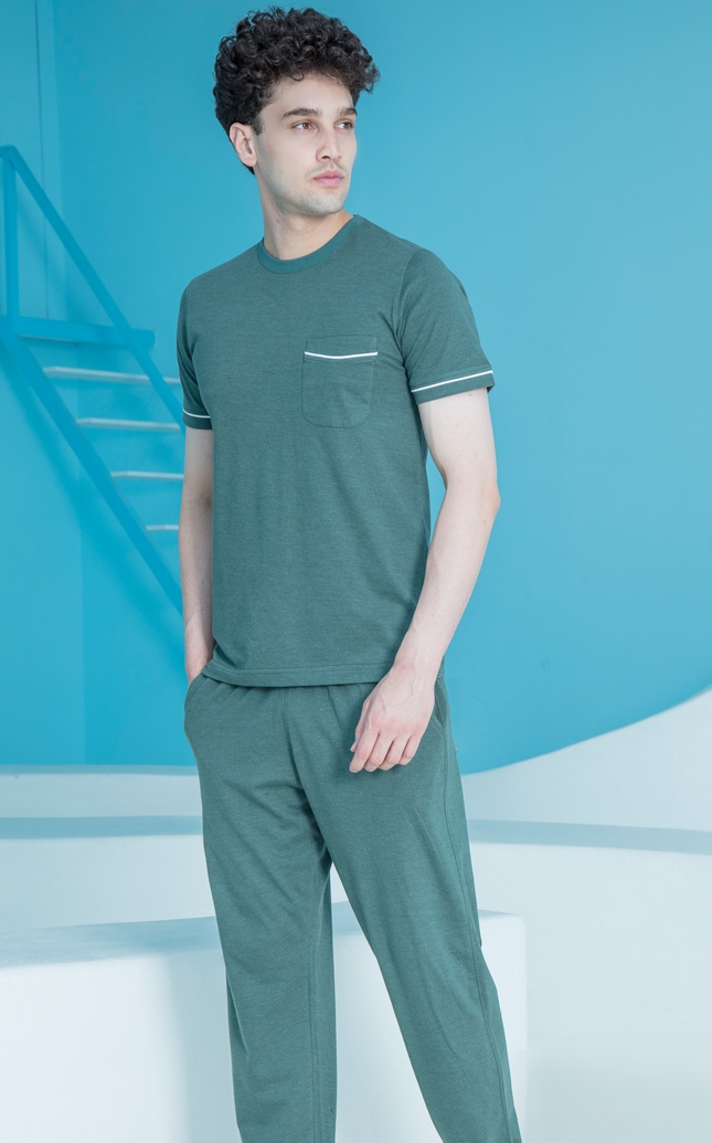 ست تی شرت جیبدار مغزی دوزی شده و شلوار راسته مردانه به دلیل وجود نداشتن نخ مصنوعی و سوراخ های کوچک در الیاف آن به راحتی دما و رطوبت بدن را تنظیم می کند به این ترتیب پوست به راحتی نفس می کشد و رطوبت آن تبخیرمی شود
