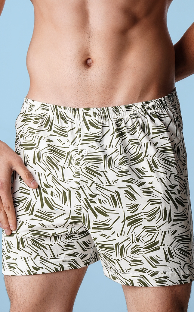 شورت پادار دگمه دار چاپدار رنگی (باکسر) مردانه به دلیل وجود نداشتن نخ مصنوعی و سوراخ های کوچک در الیاف آن به راحتی دما و رطوبت بدن را تنظیم